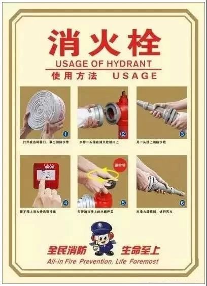 該系統(tǒng)是救火的主要設(shè)備之一,當(dāng)進行該系統(tǒng)操作時,時刻監(jiān)視該系統(tǒng)的消火栓報警信號。當(dāng)滅火人員按下消火栓按鈕發(fā)出報警信號后,消防控制中心得到該消火栓的報警信號,這時消火栓泵自動啟動,消防泵信號燈亮。若不能自動啟泵時,應(yīng)立即使用手動啟泵,仍不能啟動時,速與消防泵房人員聯(lián)系,或派人到消防泵房強行啟動。當(dāng)消火栓系統(tǒng)管道壓力超過8.5MPa時,消防泵房消防水回路電動閥和電磁閥自動開啟,消防水回流至消防水池。消防栓的使用方法: