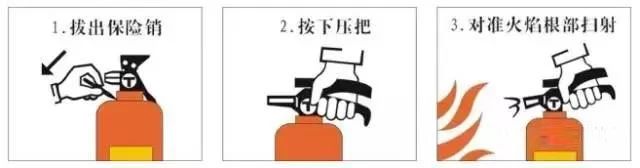 C.距離著火點5米左右處拔下保險銷,距離火源2-3米處,一只手握住噴嘴另一只手用力壓下壓把;不準(zhǔn)橫臥或顛倒使用滅火器。