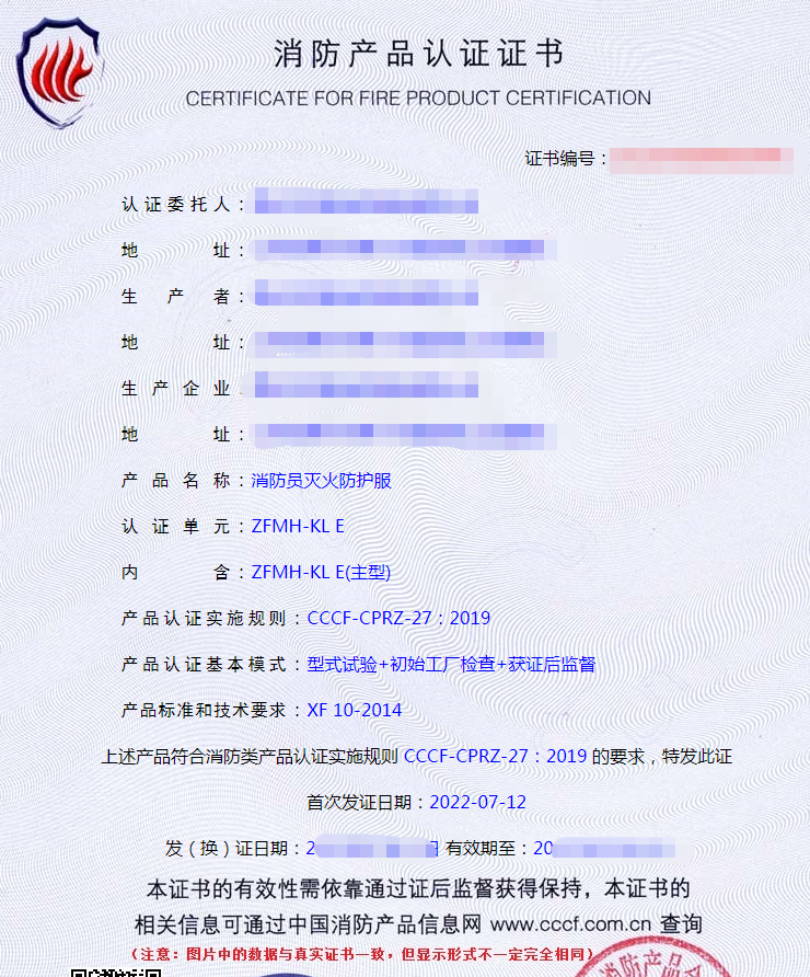 消防員滅火防護(hù)服認(rèn)證檢驗(yàn)要求