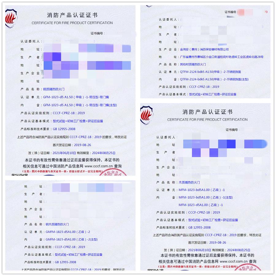 祝賀我司惠州地區(qū)客戶申請(qǐng)的(鋼質(zhì)隔熱防火門(mén)、其他材質(zhì)隔熱防火門(mén)、木質(zhì)隔熱防火門(mén)、鋼木質(zhì)隔熱防火門(mén))已于2021年6月10號(hào)獲證,同祝企業(yè)生意興隆,財(cái)源滾滾。